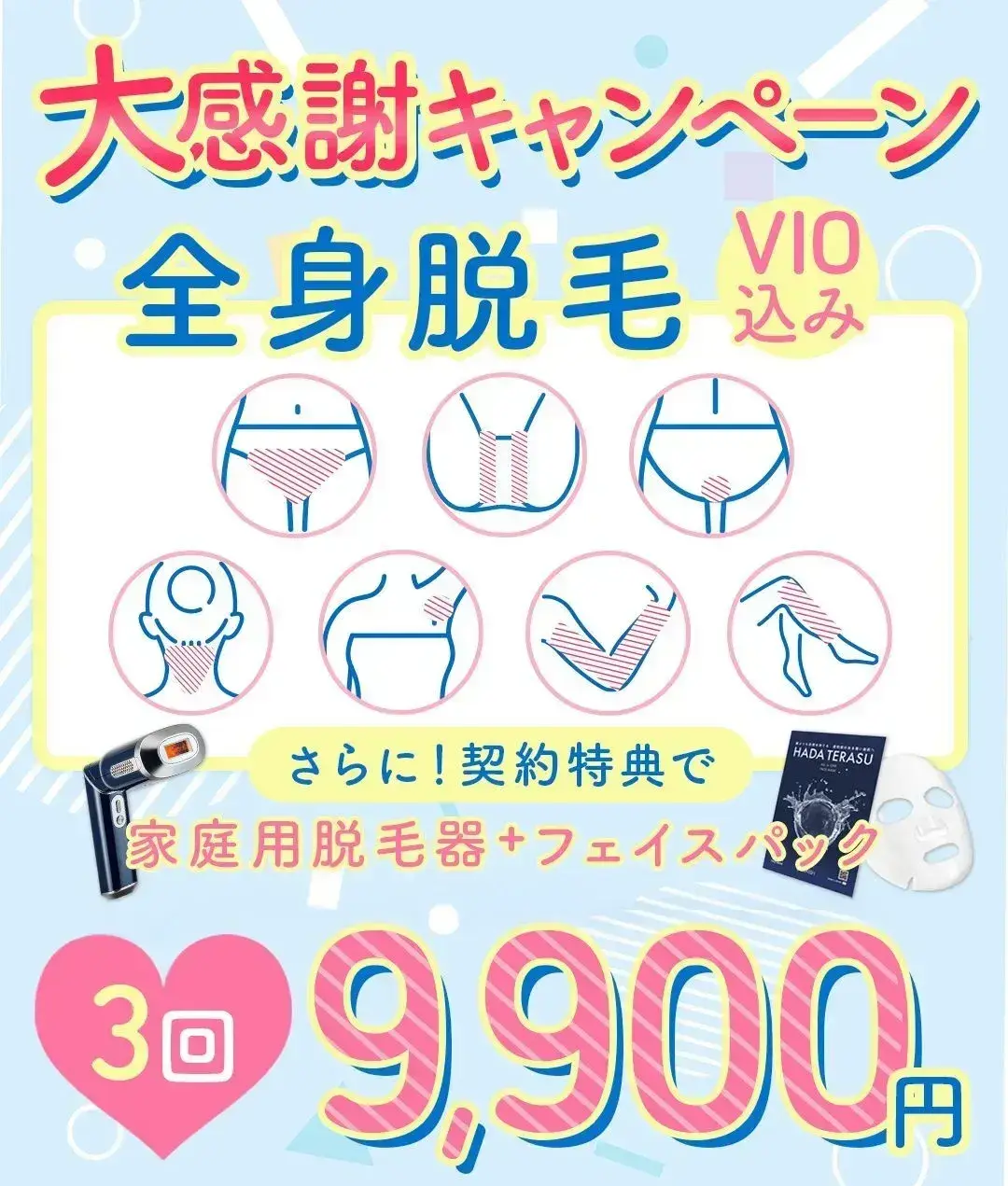 9,900円で3回全身+VIO脱毛を体験したら、